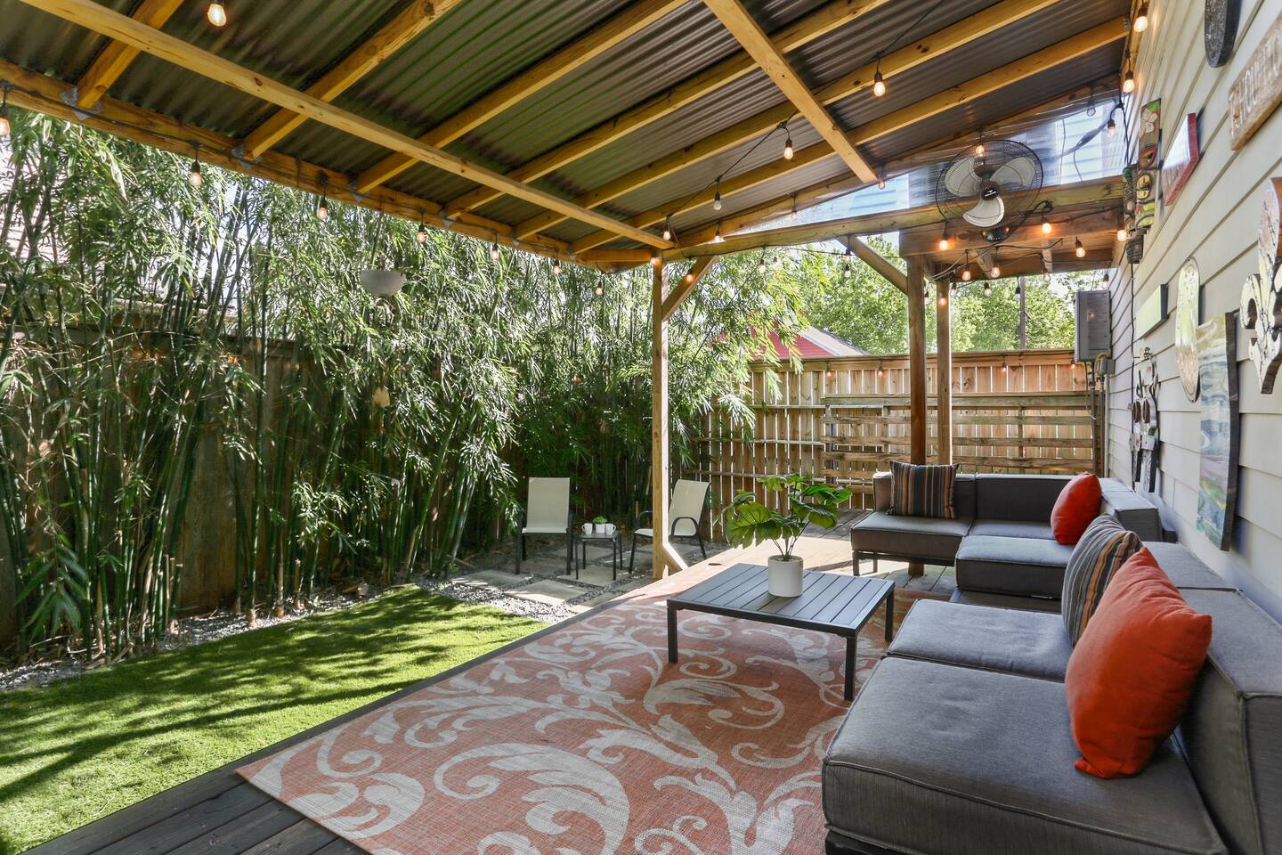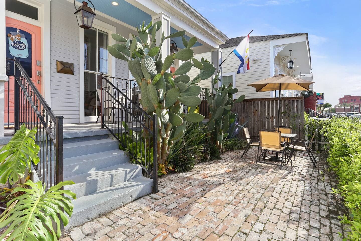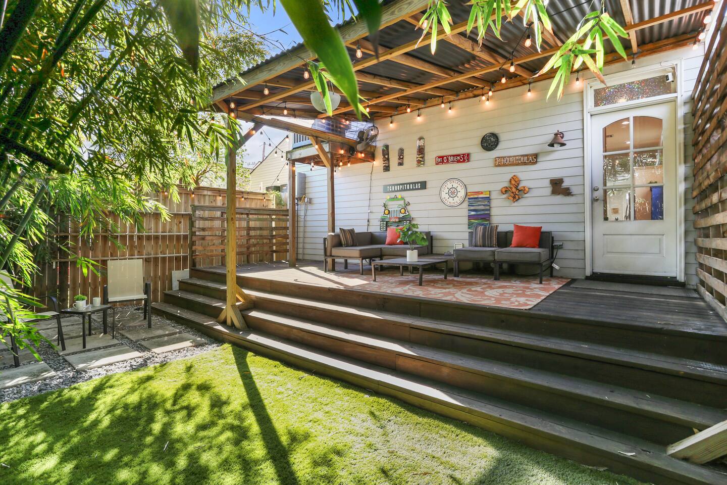 This listing is for the entire 3 bedroom, 2 bathroom home with its own private entry. This listing includes 3 bedrooms, all with king beds, two bathrooms(one with luxury jacuzzi tub and shower, and one with a historic clawfoot tub and shower), full kitchen including coffee/cocktail bar, front porch with patio furniture and bricked-in courtyard with patio table. The backyard features a deck with outdoor sectional, adorned with local metal signs, and all adorned with beautiful and exotic bamboo for shade. There is plenty of room to spread out at this spacious and carefully curated home! There is plenty of free street parking spaces right in front or right next door to our home. Parking is never a problem.