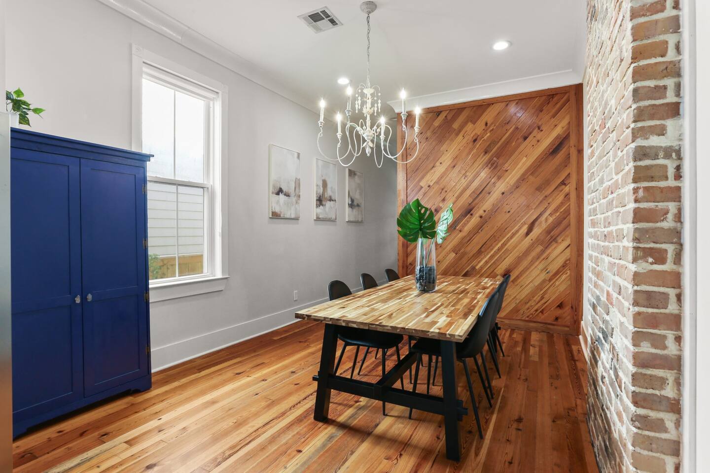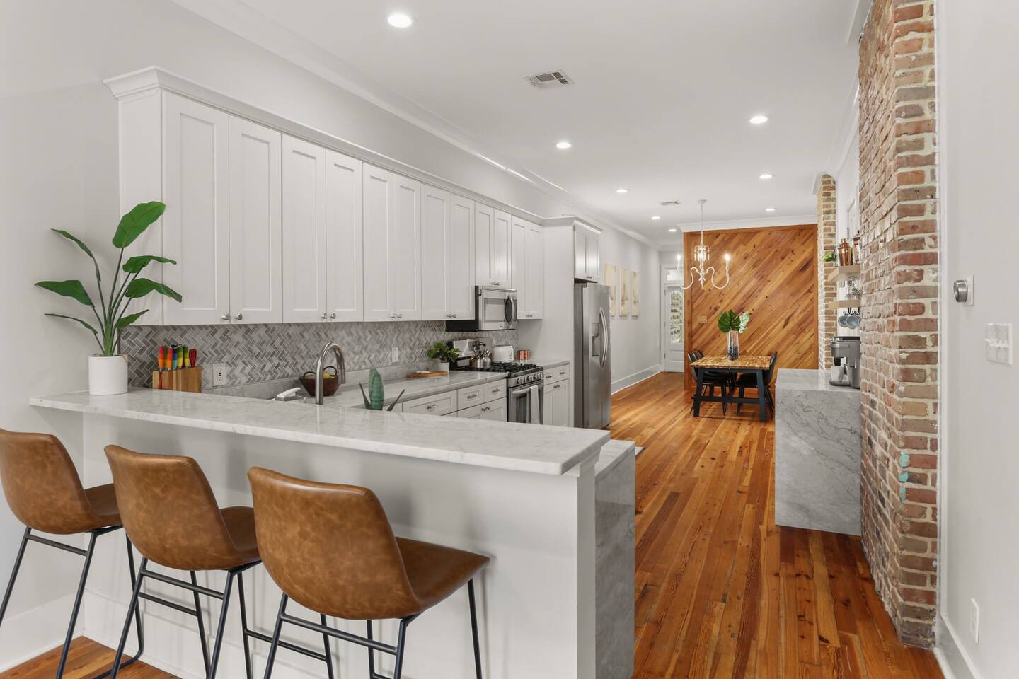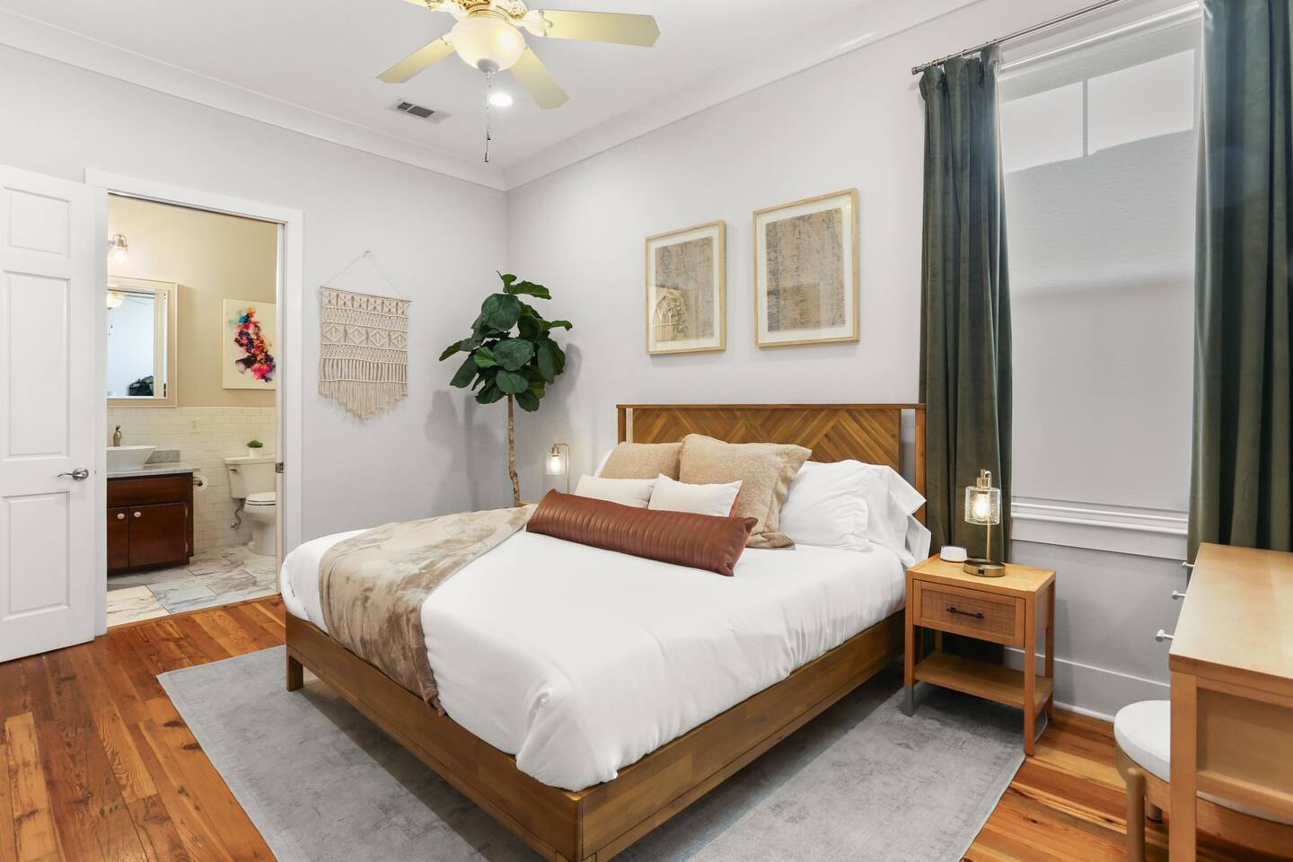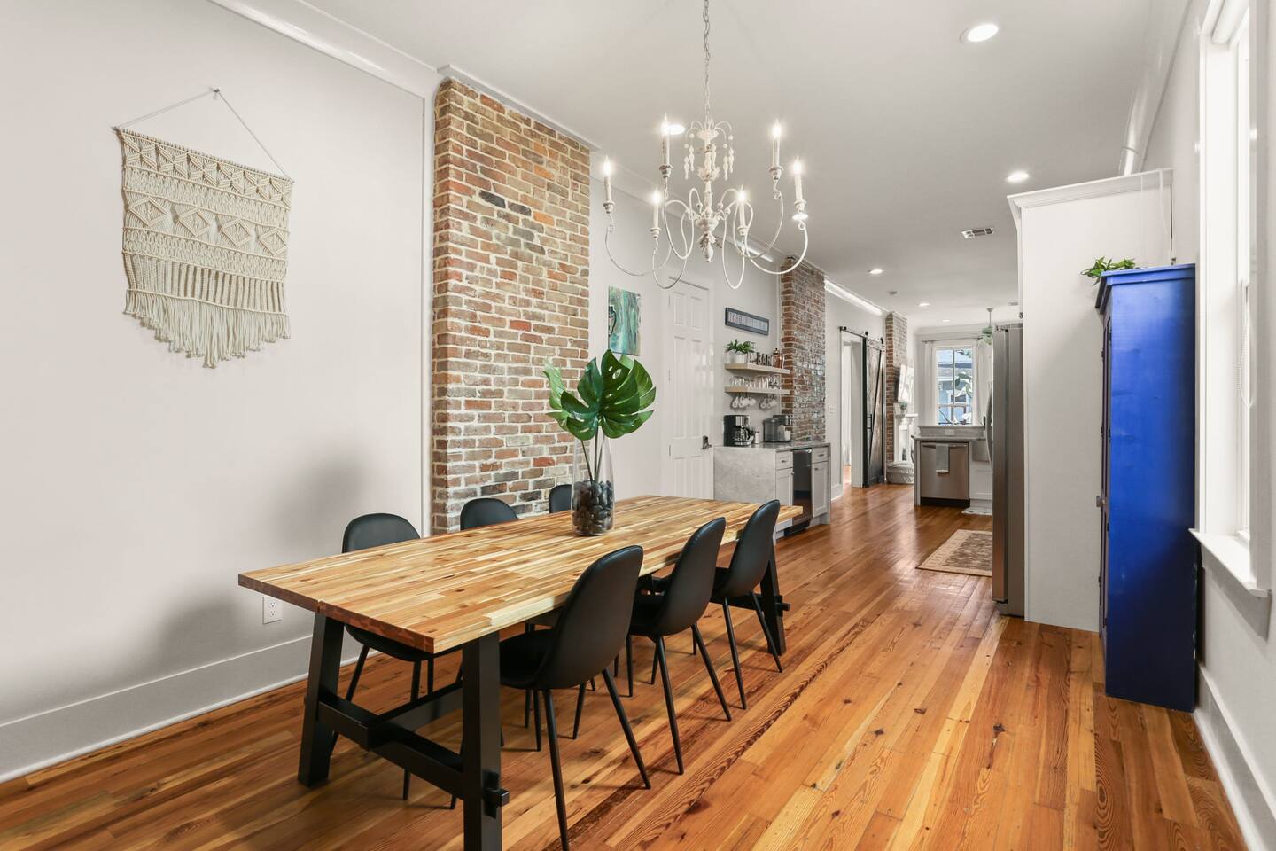 This listing is for the entire 3 bedroom, 2 bathroom home with its own private entry. This listing includes 3 bedrooms, all with king beds, two bathrooms(one with luxury jacuzzi tub and shower, and one with a historic clawfoot tub and shower), full kitchen including coffee/cocktail bar, front porch with patio furniture and bricked-in courtyard with patio table. The backyard features a deck with outdoor sectional, adorned with local metal signs, and all adorned with beautiful and exotic bamboo for shade. There is plenty of room to spread out at this spacious and carefully curated home! There is plenty of free street parking spaces right in front or right next door to our home. Parking is never a problem.