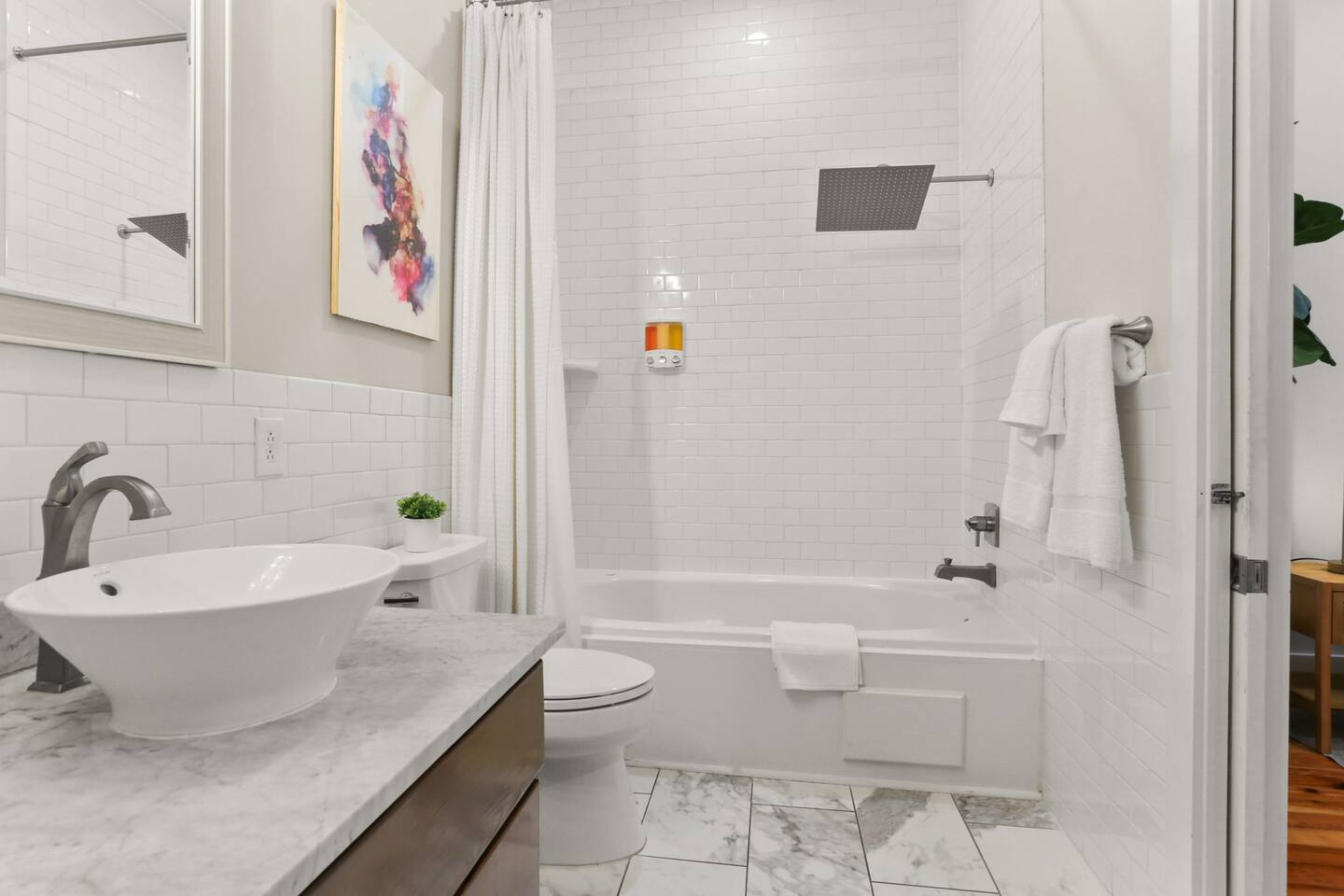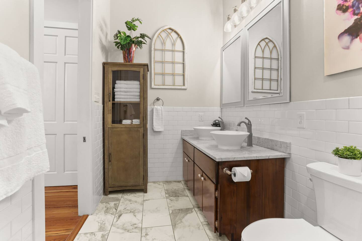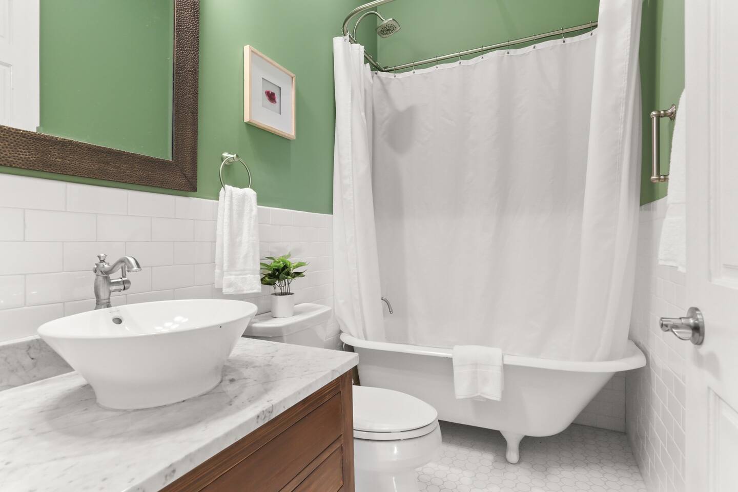 You will stay in a 100 year old beautifully recently renovated home. All bedrooms are private (not walk-through). There are 140 year old heart of pine floors that were milled out of wood from a historical warehouse in New Orleans. Marble countertops and subway tile complete the bathroom. The bathtub is a 100 year old antique restored cast iron clawfoot tub with shower. There is so much history with a modern touch in our home.